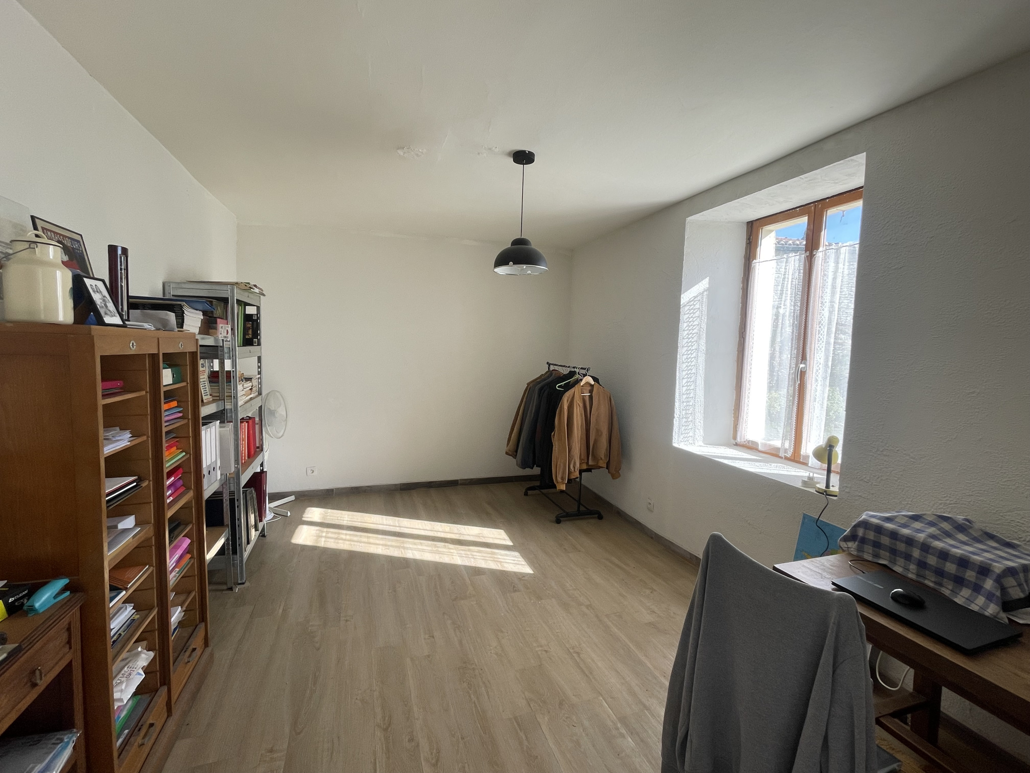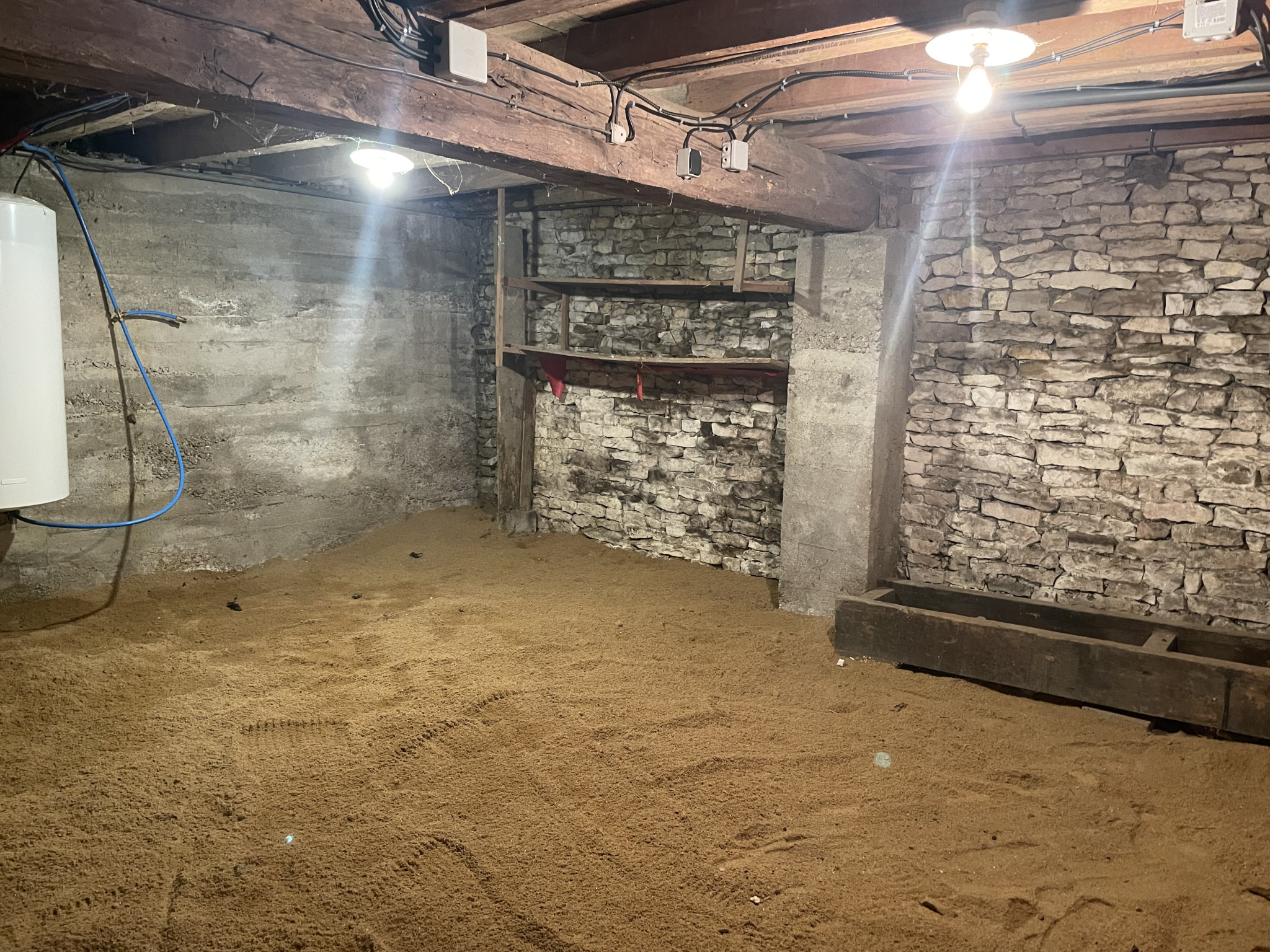 EXCLUSIVITE AGENCE // MAISON EN PIERRE habitable de 91 m2 avec GRAND TERRAIN de 2109 m2, située dans un bourg avec services, petits commerces et écoles / collège. L 'HABITATION se compose d'une entrée, cuisine , grand salon séjour de 30 m2 avec poele à bois neuf , deux chambres de 15 m2 et 12 m2, une salle d'eau, wc et une buanderie arrière cuisine . Terrasse. Une cave. Un atelier de 14 m2, un abri et une remise de 18 m2. Terrain arboré de 2109 m2 avec un puits en eau. Assainissement collectif tout à l 'égout. Menuiseries double vitrage. Installation d 'électricité rénovée. Chauffage : poele à bois . Travaux : prévoir renovation de couverture. Les informations sur les risques auxquels ce bien est exposé sont disponibles sur www.georisques.gouv.fr