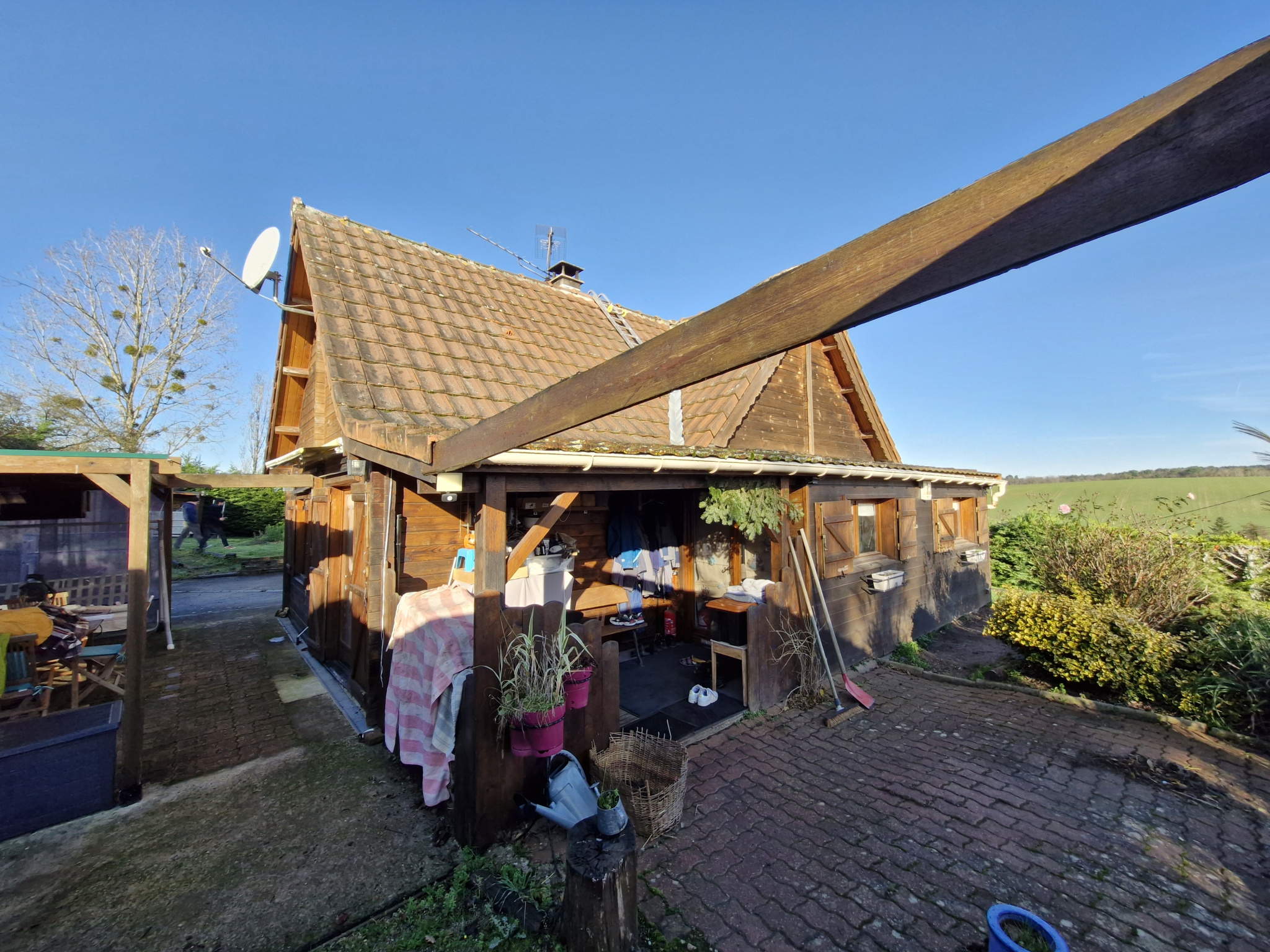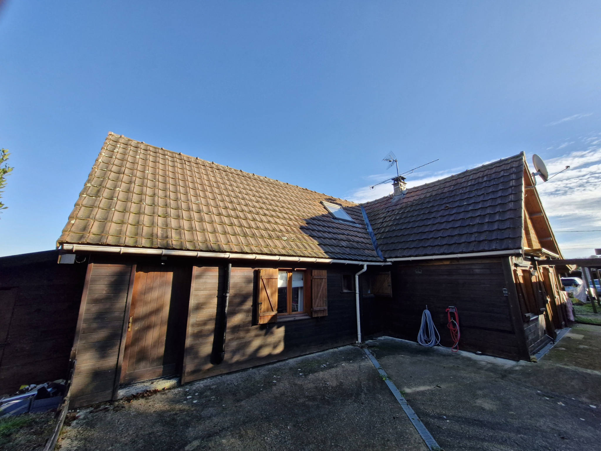 10KM NORD-EST de CHATELLERAULT - COMMUNE de OYRÉ --- CONSTRUCTION BOIS comprenant au rez-de-chaussée : cuisine aménagée et équipée - salle à manger - séjour - chambre - bureau - buanderie/lingerie - salle de bains - wc -- A l'étage : dégagement - 2 chambres - bureau --- Huisseries bois avec double vitrage et volets bois -- Chauffage électrique et poêle à bois -- Cave - CARPORT --- L'ensemble sur un TERRAIN de 1457 m².